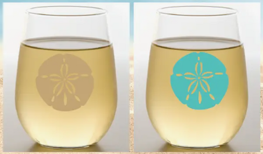 Sand Dollar (Aqua / Sand) - Shatterproof Stemless Wine Glass - 2-pk