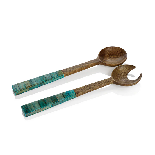 Mango Wood Salad Servers With Inlaid Bone Handle