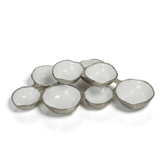 Small Cluster of Eight Serving Bowls - Nickel with White - 12.75-in