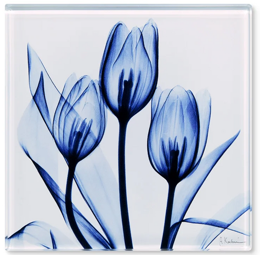 Blue Tulip Trio - X-Ray Floral Art Coaster by Albert Koetsier