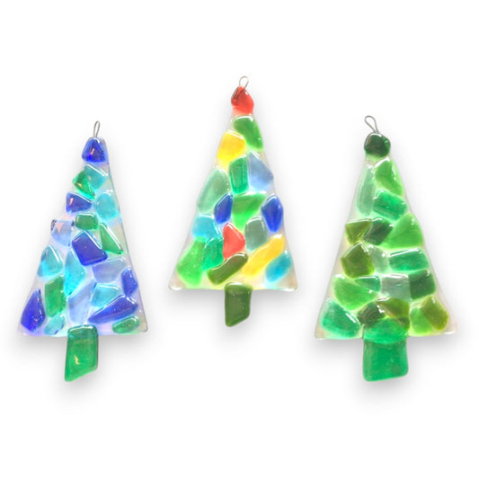 Sea Glass Inspired Kaleidoscope Fused Glass Christmas Tree Ornament - 4-1/4-in