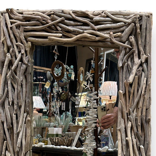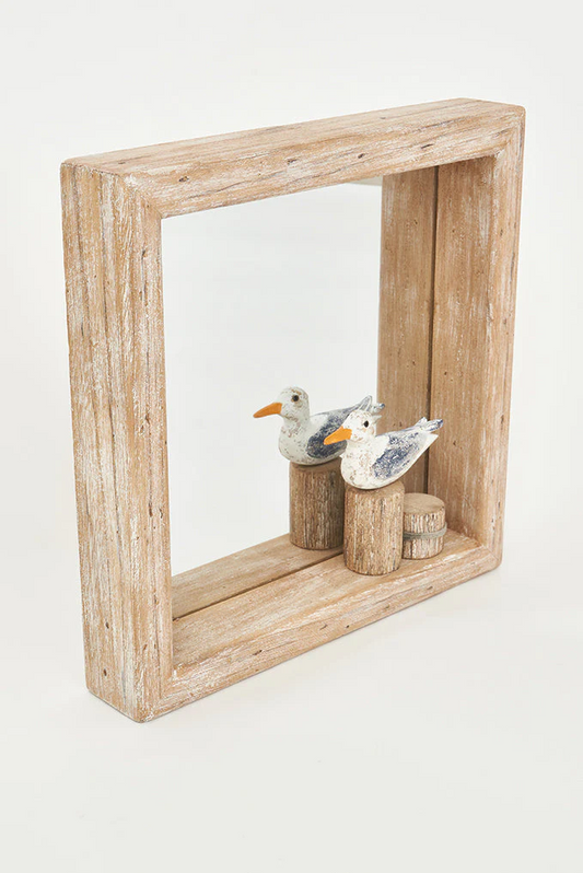 Driftwood Mirror With Gull On Coastal Piling - Square 13.3-in
