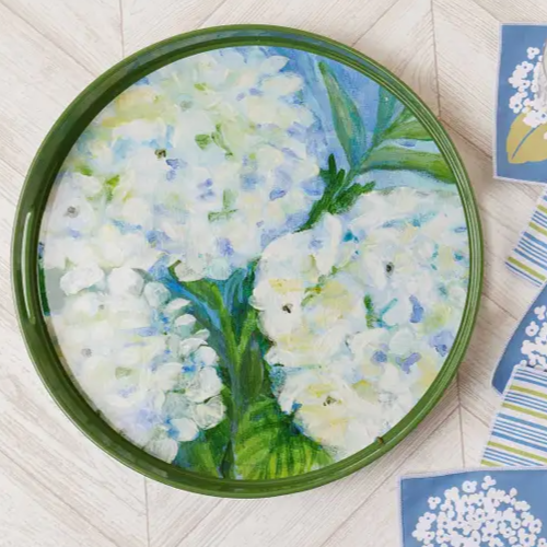 White Hydrangea Art Decorative Serving Tray - 15-in Diameter