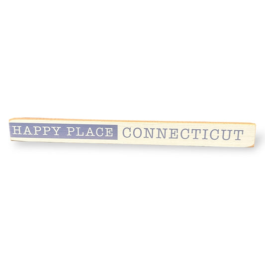 Happy Place Connecticut - Skinny Wood Shelf Sitter - 15-3/4-in