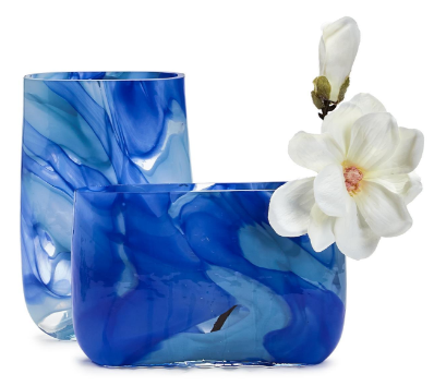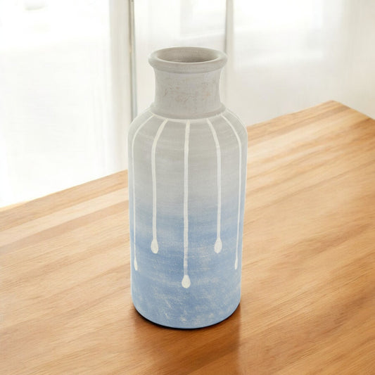 Blue Ceramic Abstract Ombre Drip Decorative Vase with Gray and White Accents