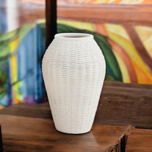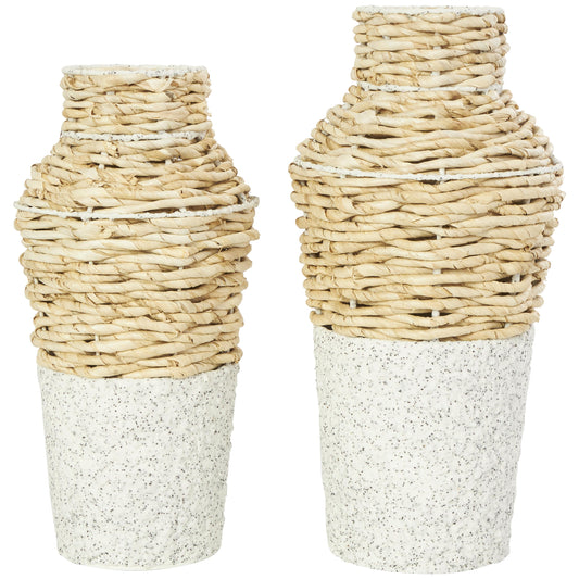 Brown Seagrass Woven Decorative Vase with Speckled Black and White Base