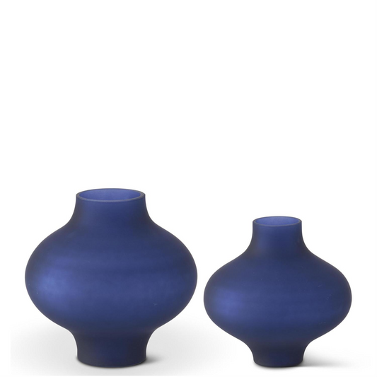 Diva Round Porcelain Bud Vase - Blue with White Stripes 7"W x 6"H