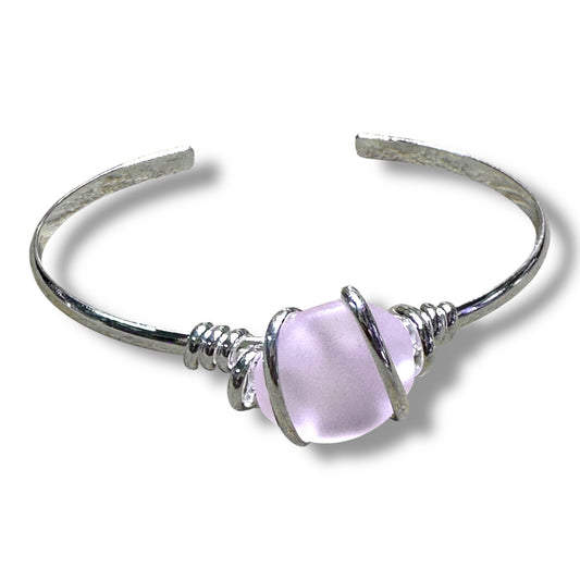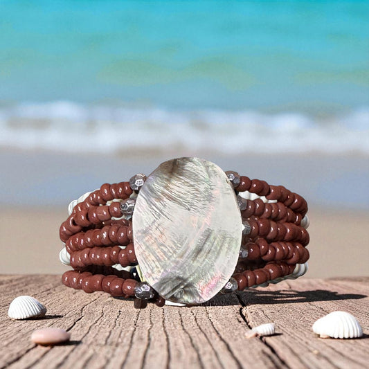 Good Karma Miyuki Crescent Hoop Earring - Mist/Salmon/Silver