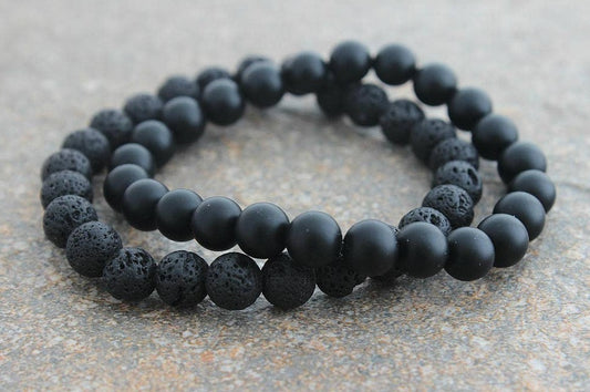 Men's Bracelet Set - Black Matte Onyx and Lava Stone