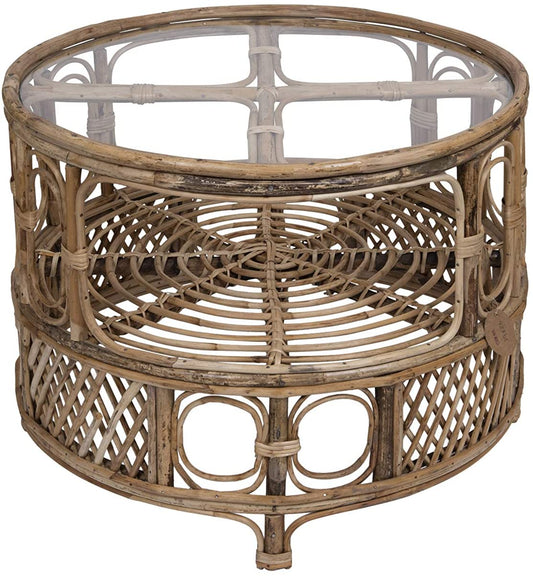 Round Bamboo Table with Glass Top and Bottom Shelf - 25-1/2-in