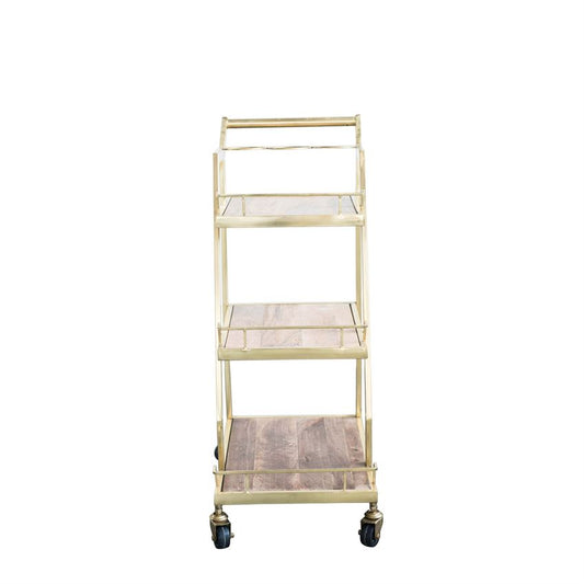Wood and Metal Three-Tier Bar Cart with Caster Wheels - Gold