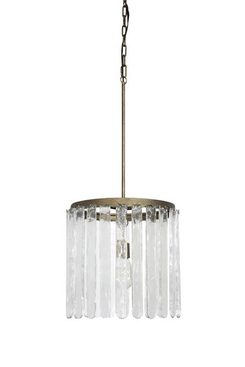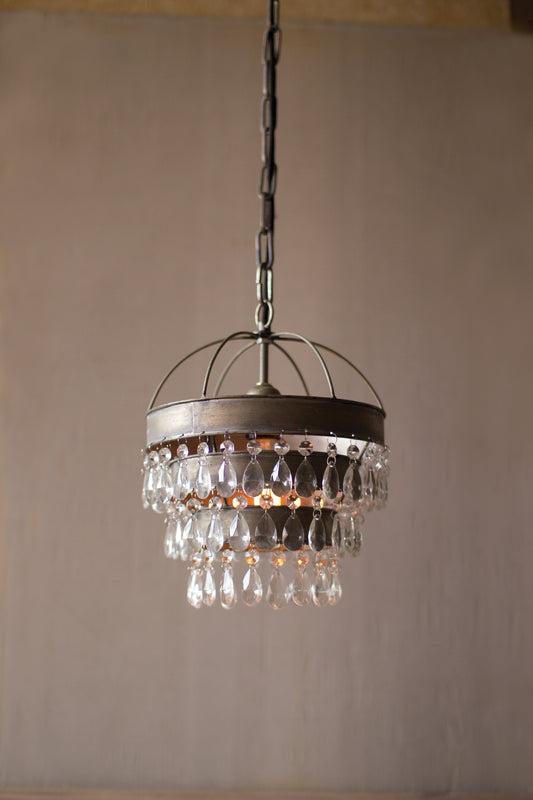 Metal Layered Pendant Lamp with Hanging Clear Glass Gems - 10-in