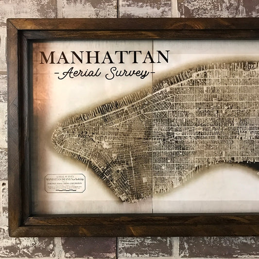 Vintage Aerial Manhattan Island (NYC) Photo Collage in Reclaimed Wood Frame - Brown - 52-in