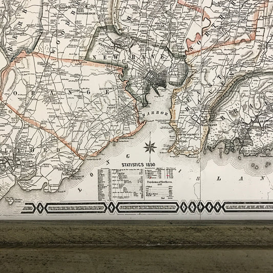 Vintage New York To New Haven Railroad Map Circa 1845 Framed Shadowbox 45-in W