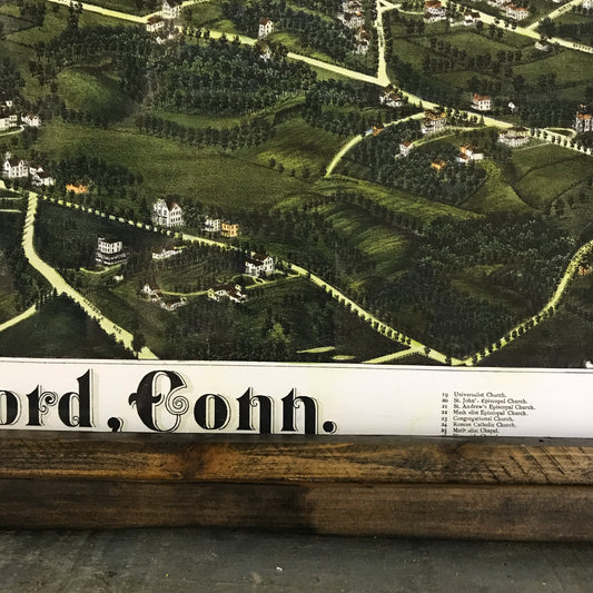 Hartford Connecticut Vintage Map Circa 1877 Framed Gray/Brown Shadowbox