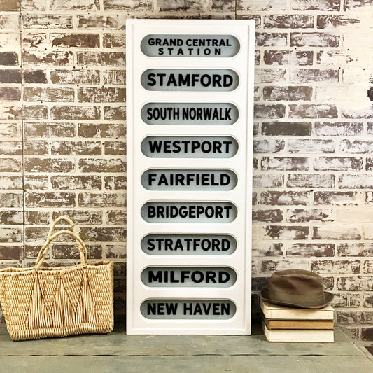 Vintage Metro North New Haven Line Train Station Lighted Panel - White Vintage Finish 45-in