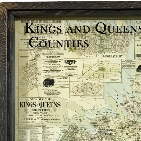 Kings and Queens Counties New York Vintage Map Circa 1886 Framed Brown Shadowbox - 25-1/8-in