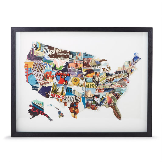Framed Paper Collage USA Map Wall Art - 32-in