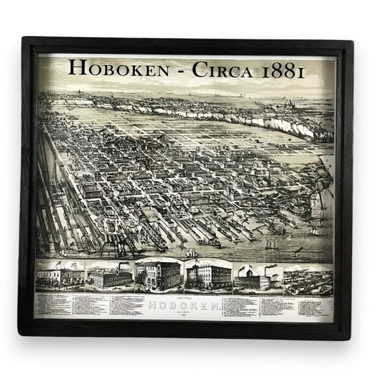 Vintage Map of Hoboken Circa 1881 Framed Shadowbox 25-in