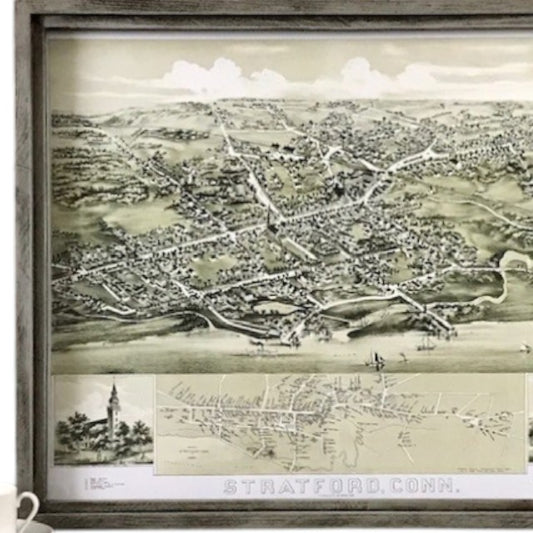 Stratford Connecticut Vintage Map Circa 1882 - Reproduction in Framed Shadowbox 25-1/2-in