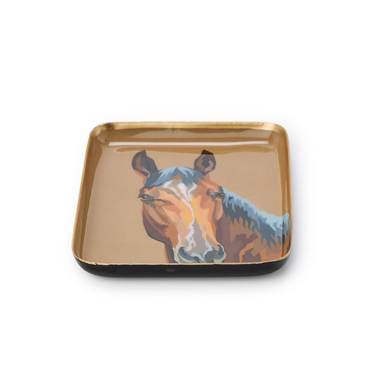 Derby Horse Trinket Desk Tray in Antiqued Brass Finish - 8-in