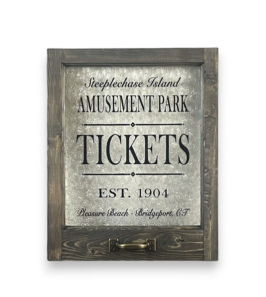 Steeplechase Island Amusement Park Framed Ticket Office Window - 18-in