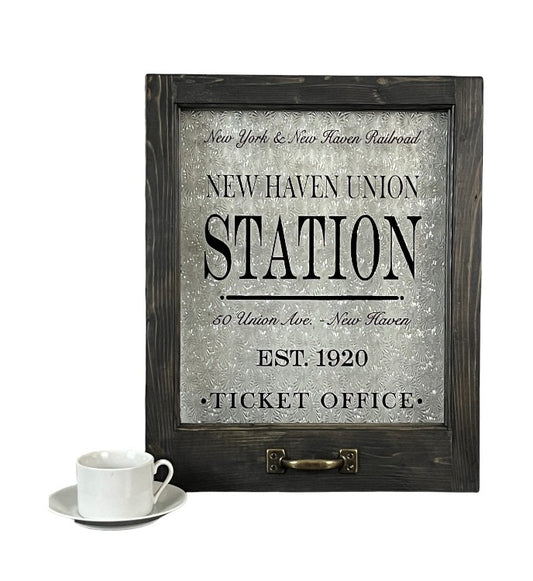 New Haven Union Station Framed Ticket Office Window - 18-in