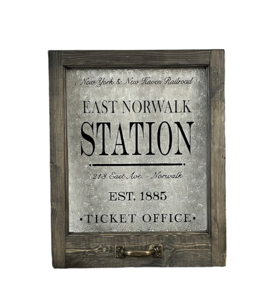 East Norwalk Station Framed Ticket Office Window - 18-in