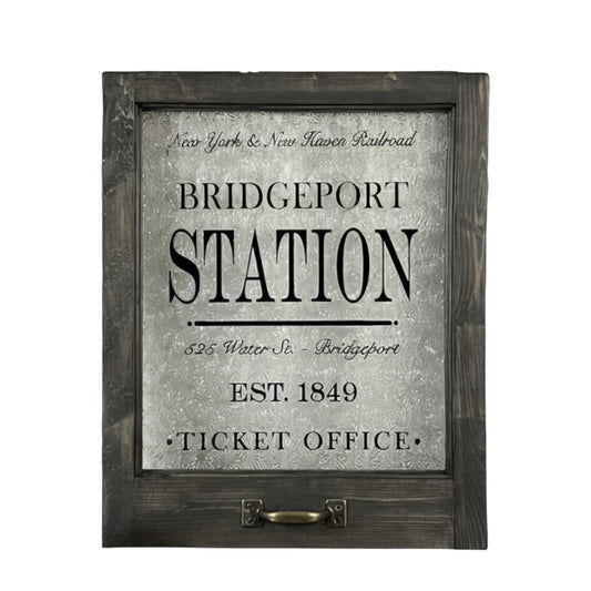 Bridgeport Station Framed Ticket Office Window - 18-in