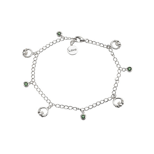 Green Cubic Zirconia Claddagh Bracelet - Sterling Silver