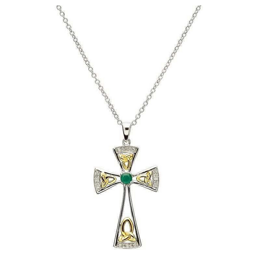 Emerald Set Cross with Celtic Knot Necklace - Sterling Silver