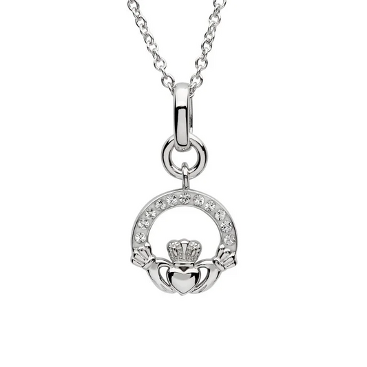 Swarovski Crystal Set Claddagh Pendant - Sterling Silver