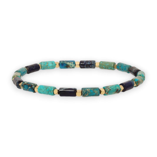 Gemstone Stretch Bracelet - Imperial Jasper Shades of Blue