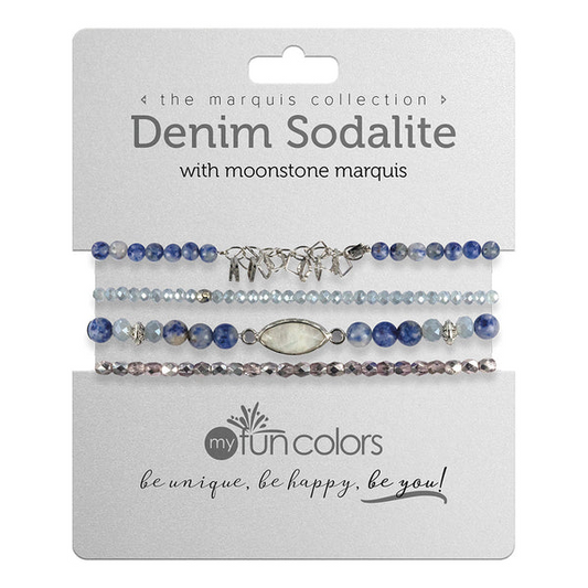 Denim Sodalite with Moonstone Marquis Stack Bracelets