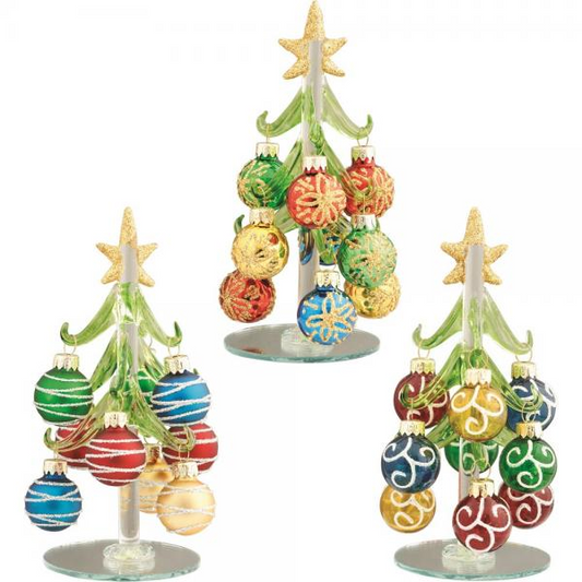 Green Glass LED Tree With Swirl Ornaments - 8-in.