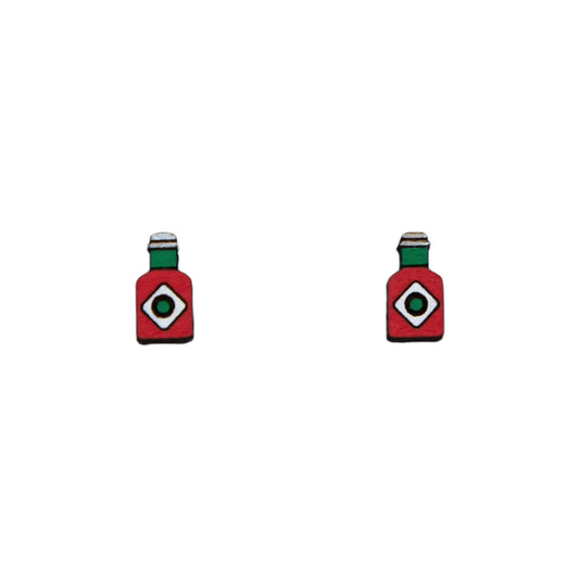 Tabasco Sauce - Wood and Stainless Steel Stud Earrings