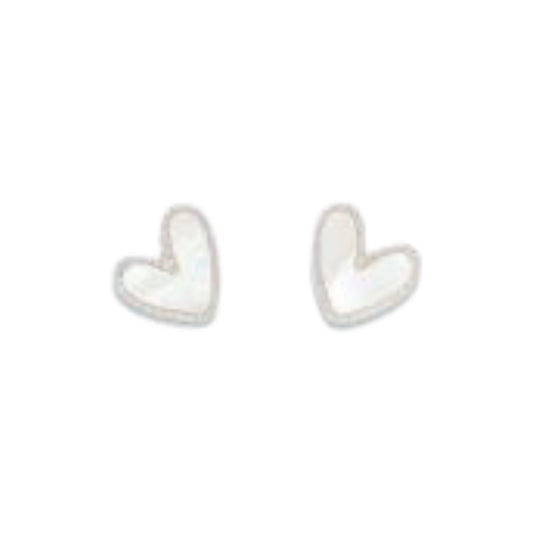 Pearlized Hearts in Silver - Silver Stud Earrings