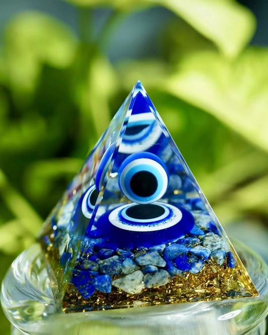 Lapis Lazuli Evil Eye Protection Orgonite Pyramid - 2-1/3-In