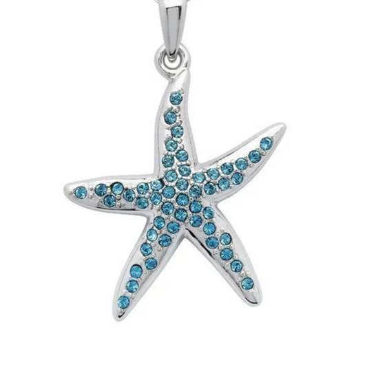 Starfish Drop Earrings Adorned with Aqua Crystals