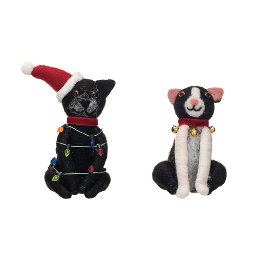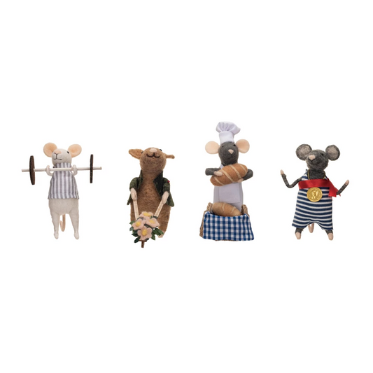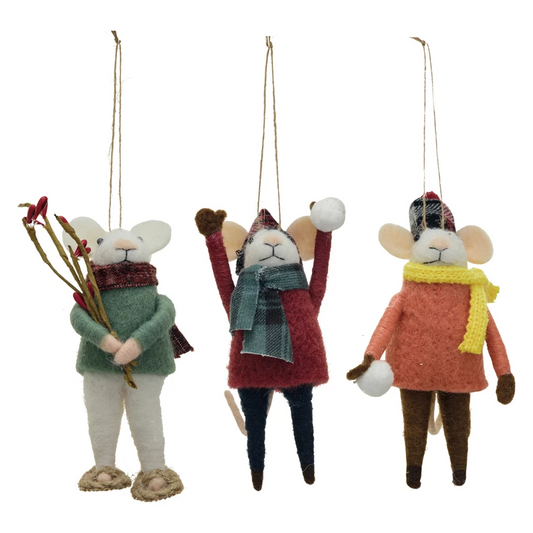 Wool Felt Mouse in Winter Outfit Ornament with Snowball/Firewood - 5-in