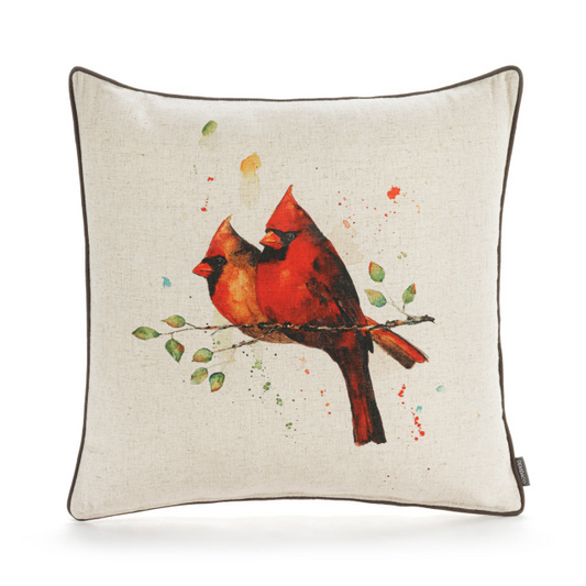 Cardinal Pair - Decorative Square Holiday Throw Pillow - 18-in