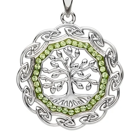 Celtic Silver Tree Of Life Pendant Embellished With Crystal