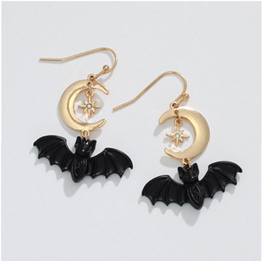 Black Bats with Moon Halloween Earrings