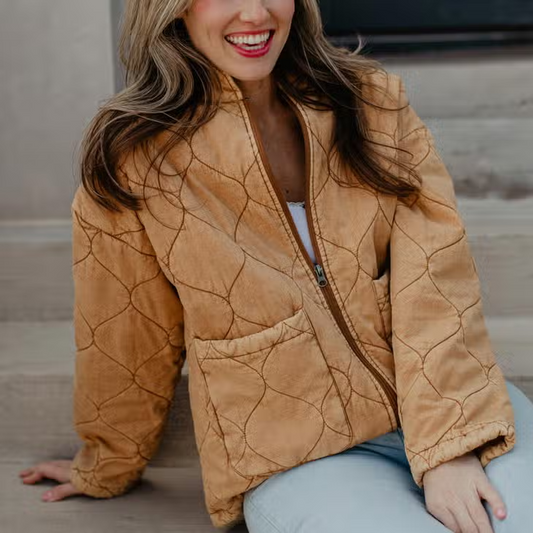 Camel Quilted Zip Up Jacket