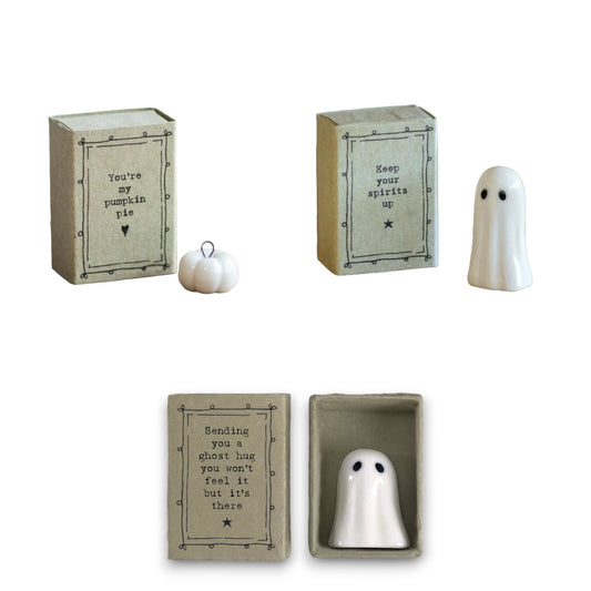 Halloween Saying Matchbox w/ Ceramic Figurine