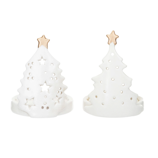 Stoneware Christmas Tree Shaped Candle Holder with Gold Electroplating