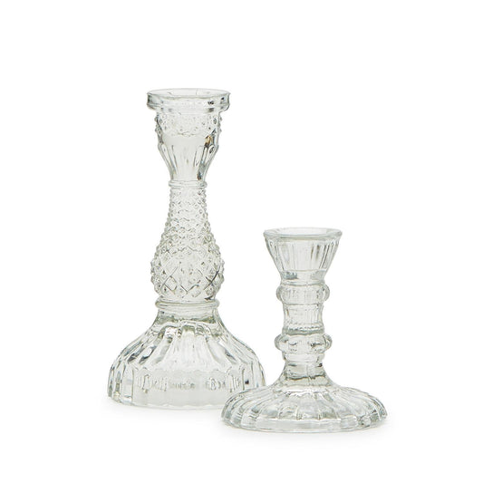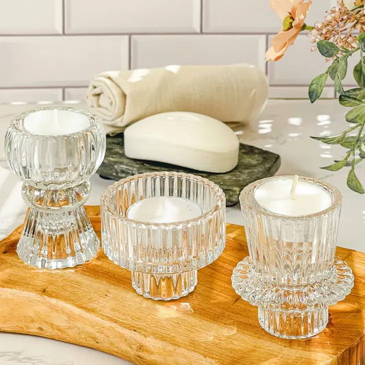 Vintage Ribbed Clear Glass Reversible Tea Light Candle and Candlestick Holder