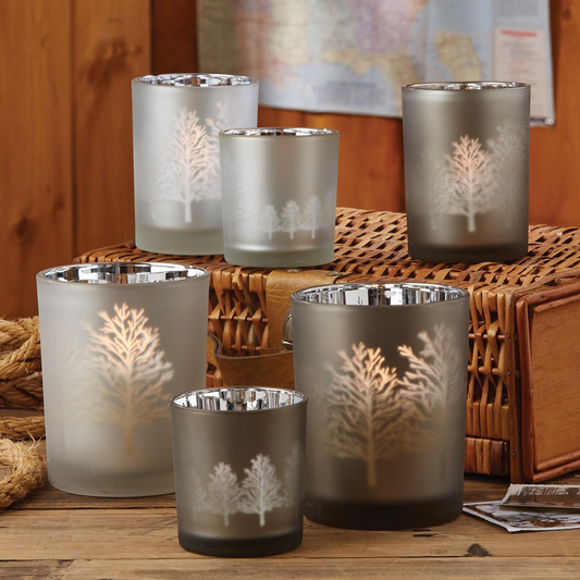 Forest Park Tree Silhouettes Frosted Tealight Candleholders