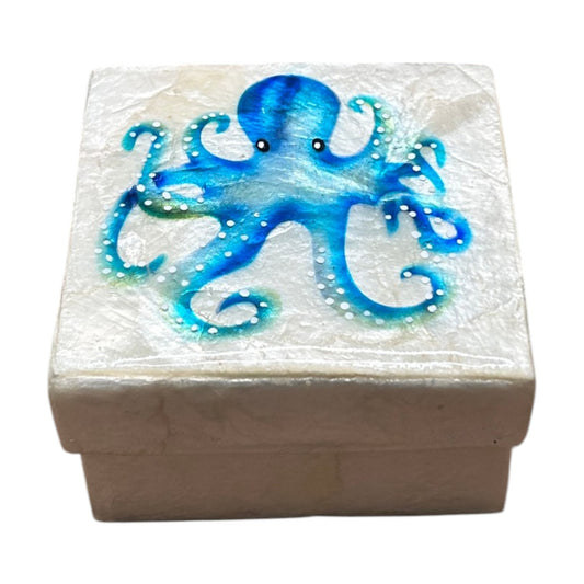 Capiz Blue Octopus - Trinket Box - 3-in