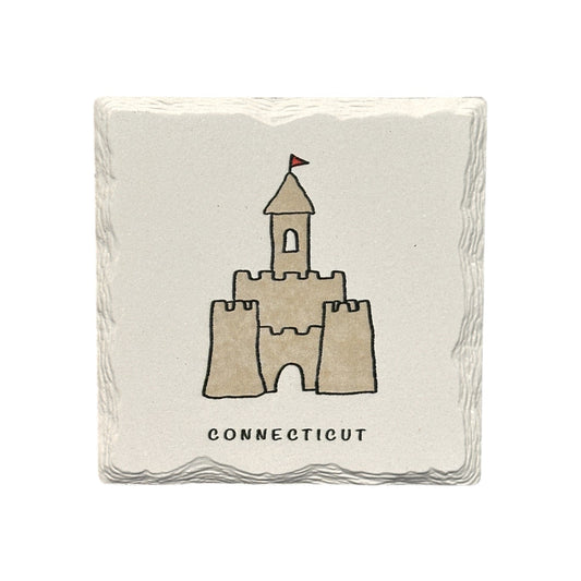 Sand Castle - Ceramic Connecticut Coaster - 4-1/4-in
